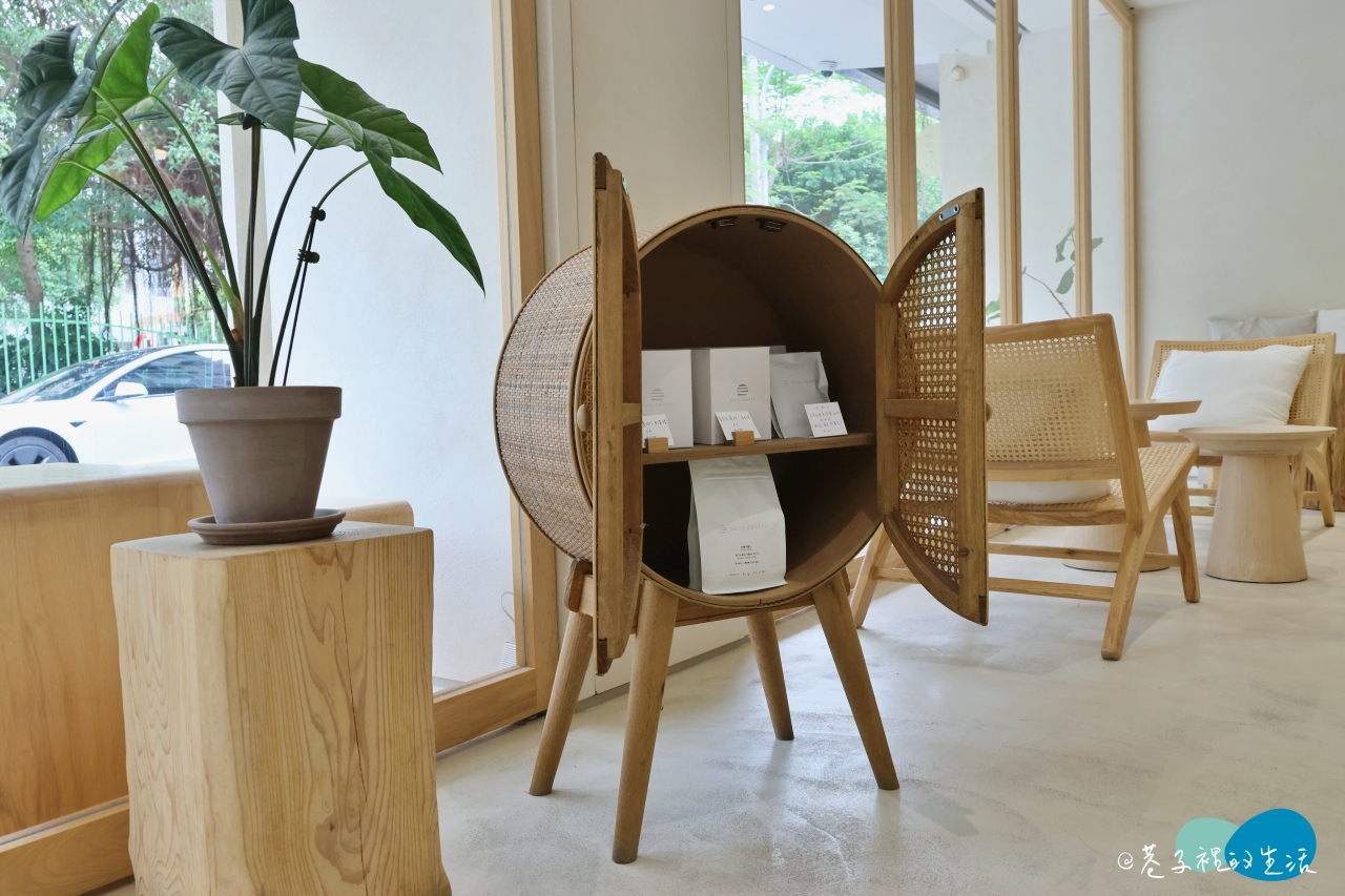 AROS Coffee 整間店裝潢的風格就是時下流行的侘寂風,極簡到不能再極簡,低飽和色的室內軟裝搭配,藤編的燈罩、椅子、小傢俱,木製的桌椅等等,整間店的裝潢超美超舒服。