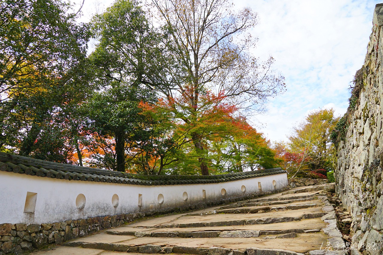 ▼我們是在 11/3 去備中松山城的,剛好遇到楓葉轉紅,山上有著綠、黃、橘、紅各種顏色的樹,搭配藍天真是超棒!