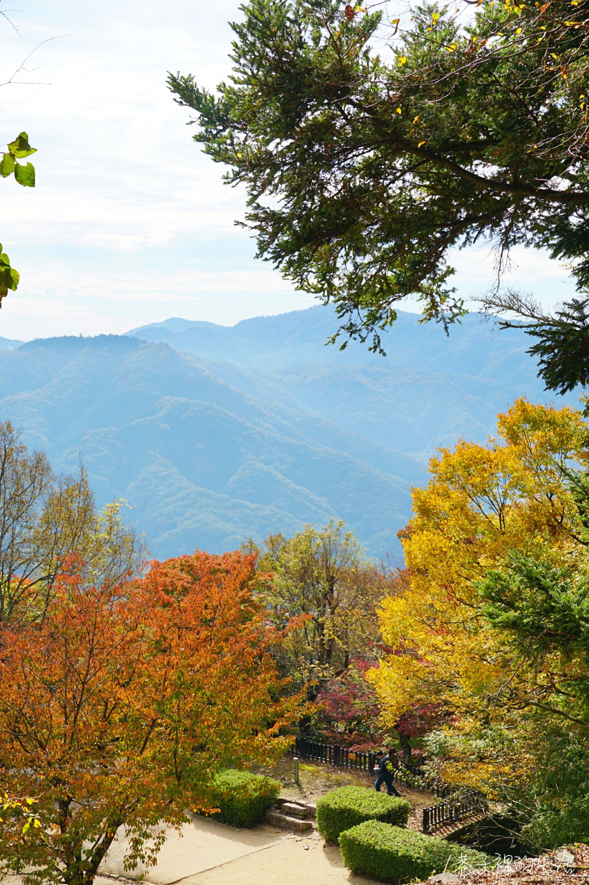 ▼半山腰的風景是這樣的,來的這天水氣比較多,拍起來有些霧霧的,不過沿路上樹葉轉紅,十分美。