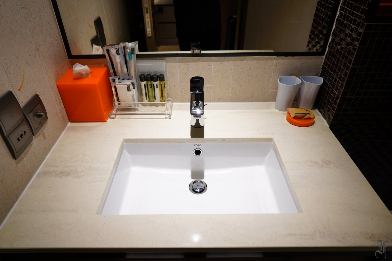 如同飯店大廳給人的繽紛活力印象,Hotel Jen 的房間內裝也是極具設計感,從牆面裝飾、沙發、地毯、工作桌的配色,都很青春活潑,真是住起來覺得很開心的飯店。燈光是稍微有點偏暖的色溫,亮度足夠,即使是晚上也不會暗摸摸的讓人很想睡覺。