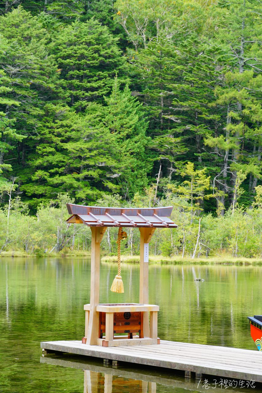 走過明神橋之後,會先路過嘉門次小屋才到明神池,如果天氣好的話,推薦可以先到明神池拍照再走回嘉門次小屋吃東西,因為我們先吃完烤魚後再去明神池整個天空變成多雲,光都不見了,明神池看起來就沒有我們查過的照片那麼誘人。