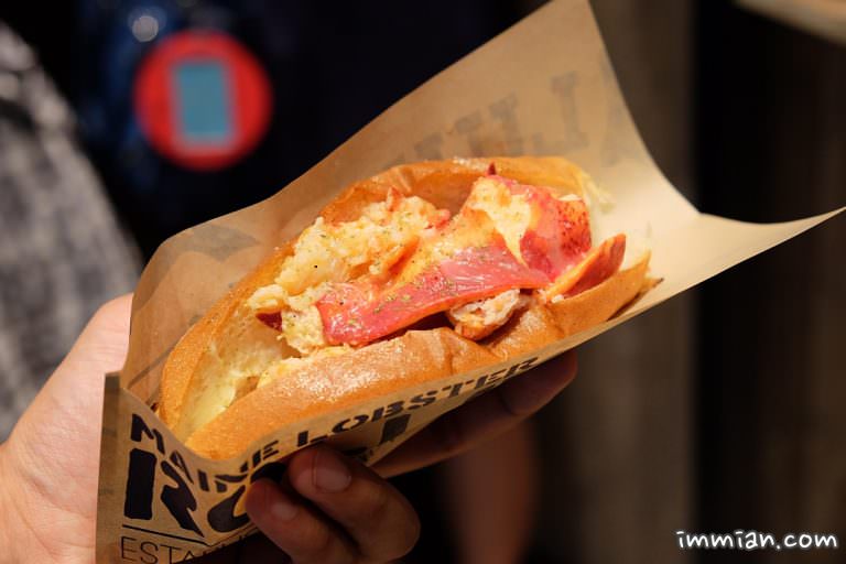 店內牆上貼著菜單,不過大部分都完售,只剩下龍蝦漢堡和蝦子漢堡(說是漢堡有點不精確,大概是龍蝦卷的感覺),因為我們打算把胃留給晚上的 M 燒肉,所以很含蓄的只點了正常尺寸的 Lobster Roll,但吃完之後覺得後悔,應該點 US 尺寸的 Lobster Roll 才對,整個就是超級無敵好吃的呀!