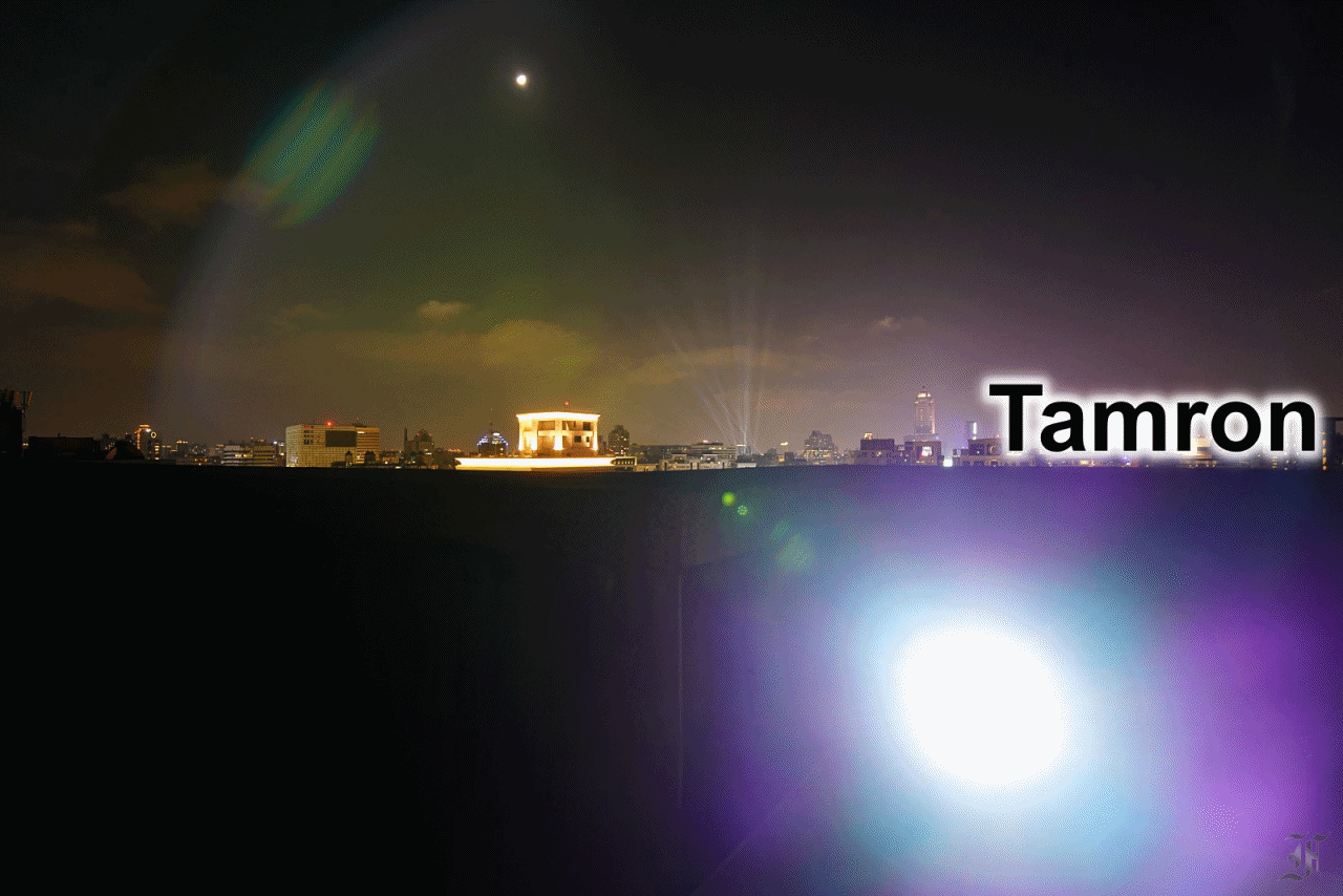 在面對人造光源強光時,Tamron 與 Sony 都有產生一定程度的光斑,不過隨著燈光角度移動,可以看到 Tamron 產生了環形的光斑,並且有內外圈之分。