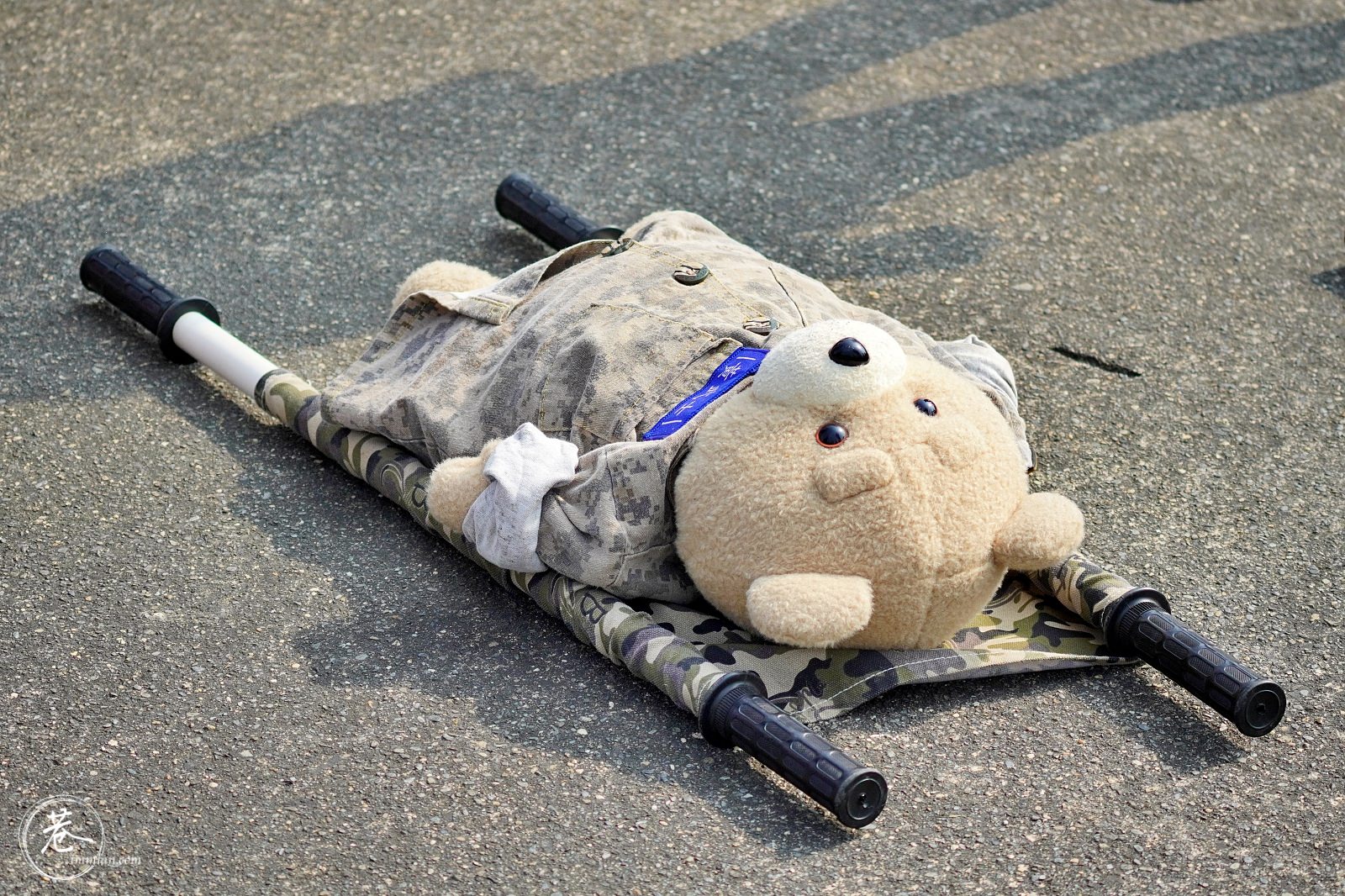 ▲國防部還有規劃給小朋友的體驗區,小朋友換上小軍服超級無敵可愛,還可以用擔架抬熊。