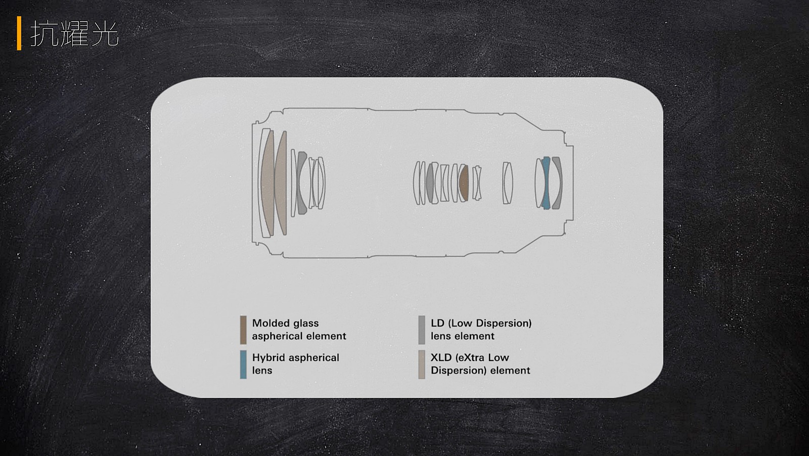講到抗耀光,一般來說望遠鏡頭,尤其是望遠變焦鏡,因為鏡片數量比較多的緣故,通常抗耀光表現會比較弱勢一點,Tamron 50-400mm 總共更是用了 24 枚鏡片。