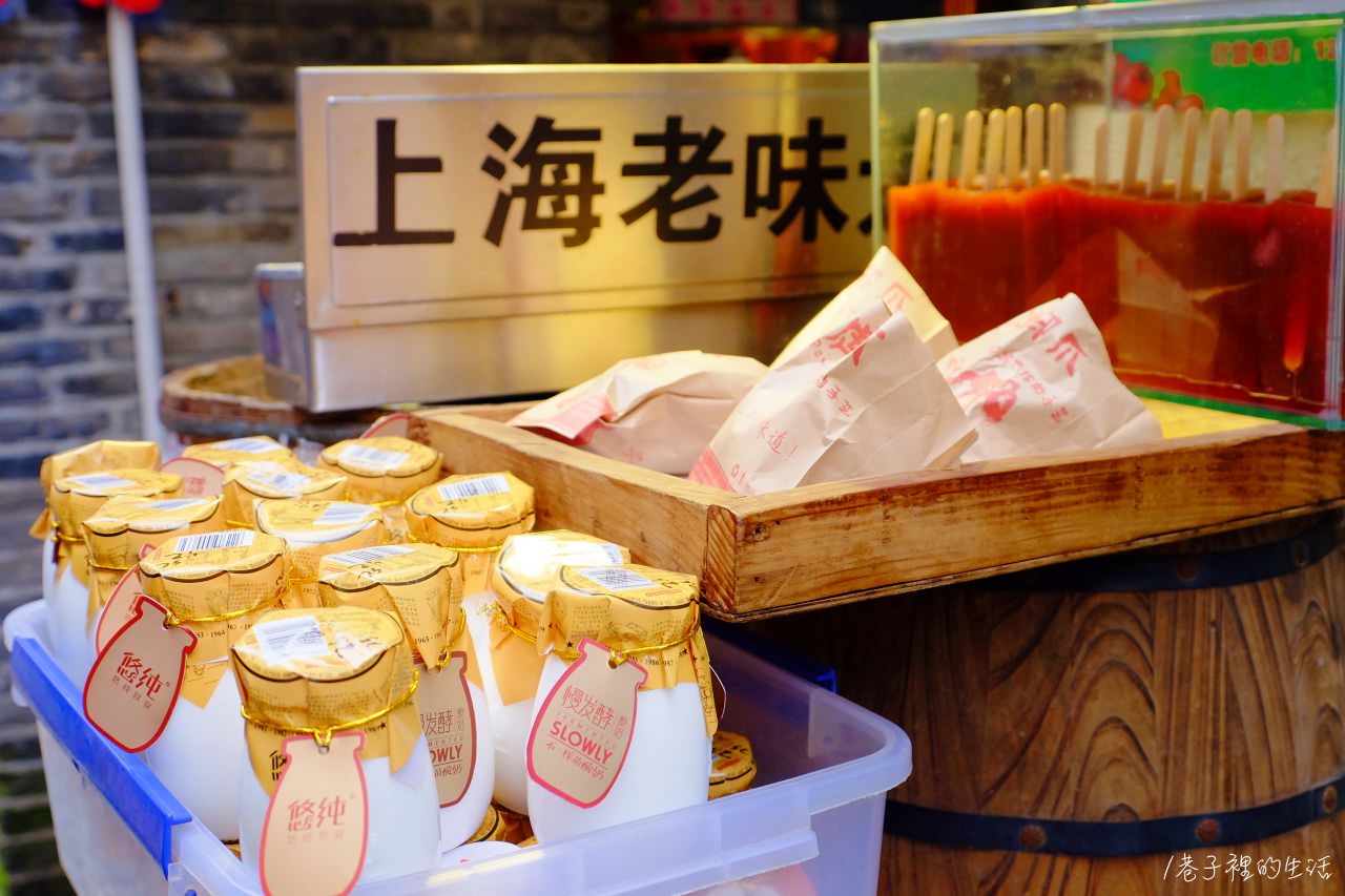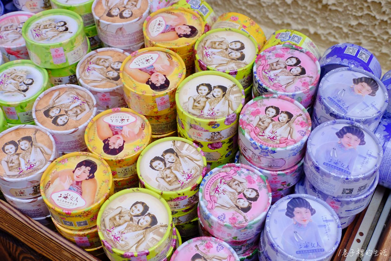 街道上也能看得到各種有趣的伴手禮小物,例如畫著舊上海少女的「上海女人桂花香精油雪花膏」似乎是很有名的在地香水伴手禮,不少攤販都有在賣;還有標語小看板,也是有不少觀光客在這而駐足挑選,雖然到最後我是什麼都沒買啦XD 但如果有伴手禮需求的人,田子坊街邊小販慢慢挑應該是可以挑到好東西的,應該吧。