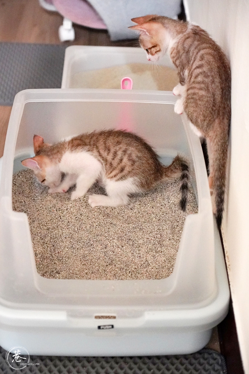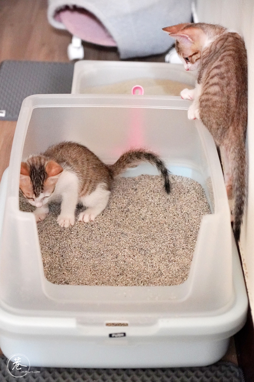 領養回兩隻可愛小喵時,幸好他們已經會使用礦砂了,省去手把手教他們使用貓砂的過程。